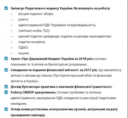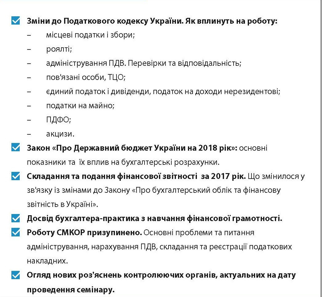 ЩО: семінар-практикум «Усе про зміни до Податкового Кодексу. Фінансова звітність за 2017 рік»