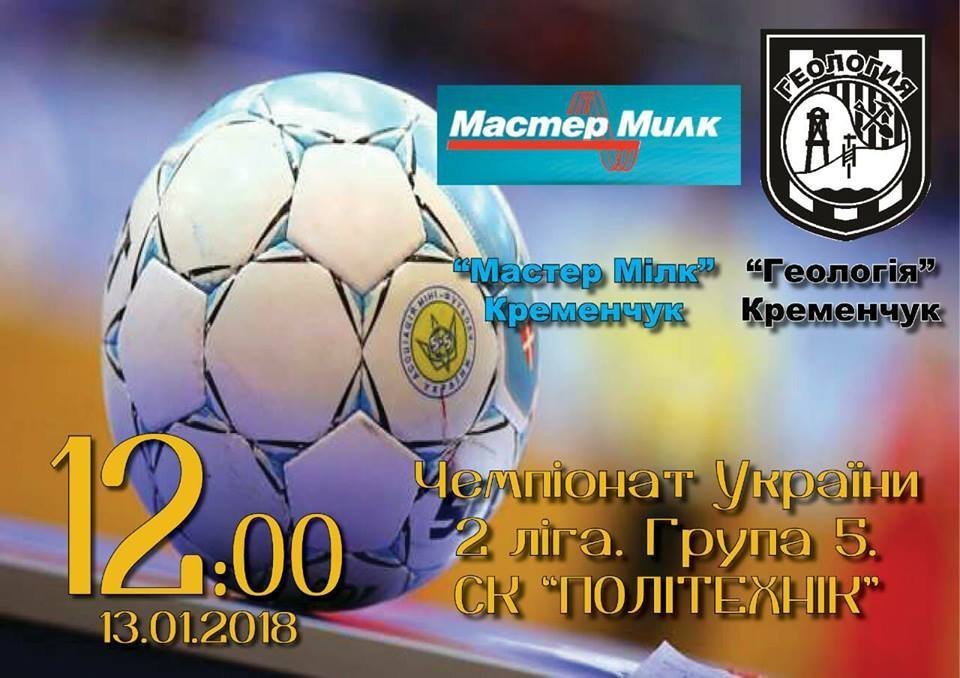 13 січня «Мастер Мілк» на СК «Політехнік» приймав «Гелогію» в рамках чемпіонату України з футзалу у Другій лізі. Як і у першій зустрічі перемогу святкувала «Геологія».