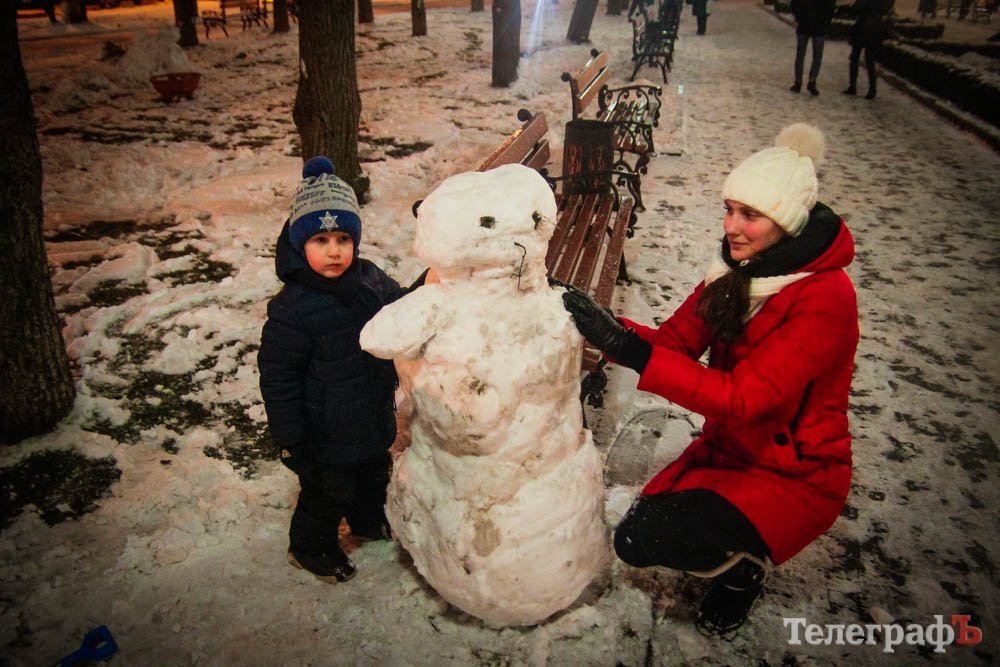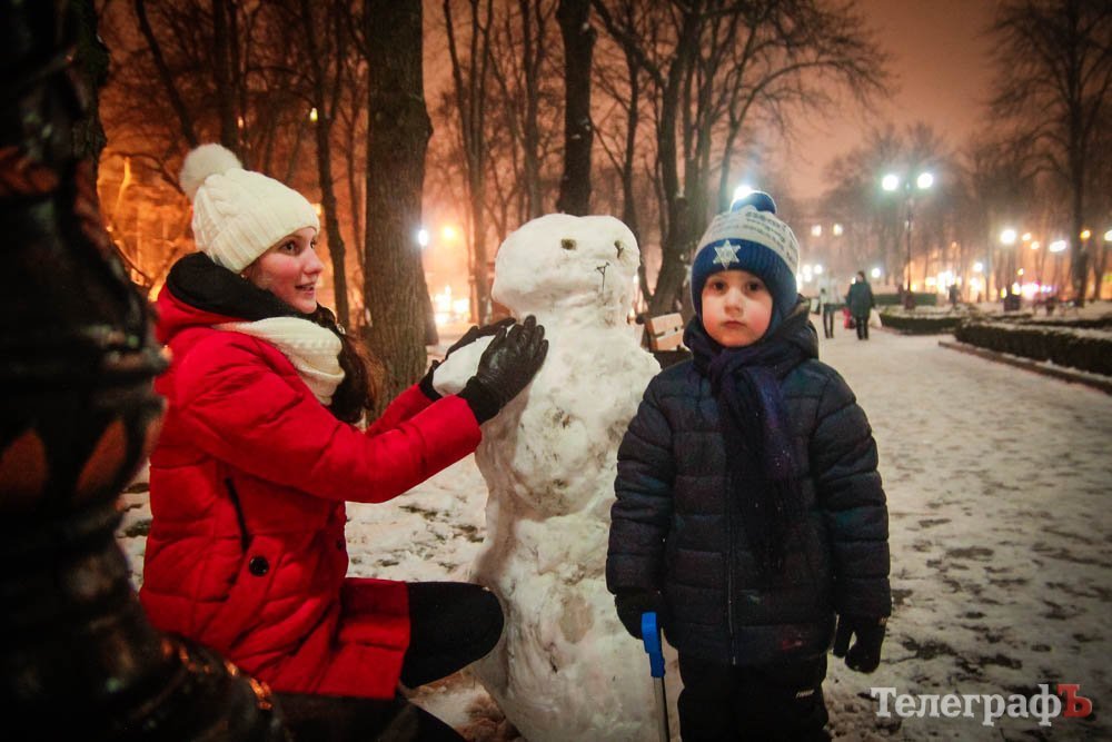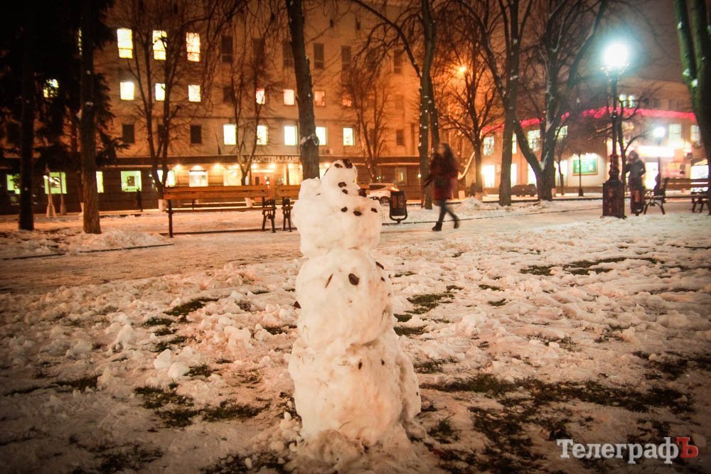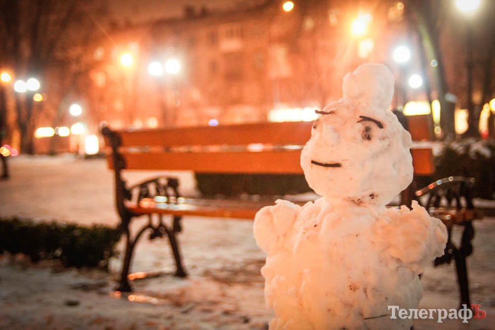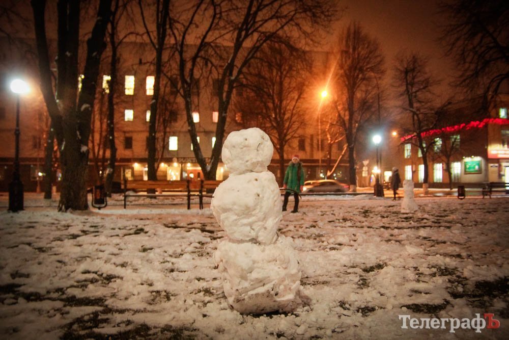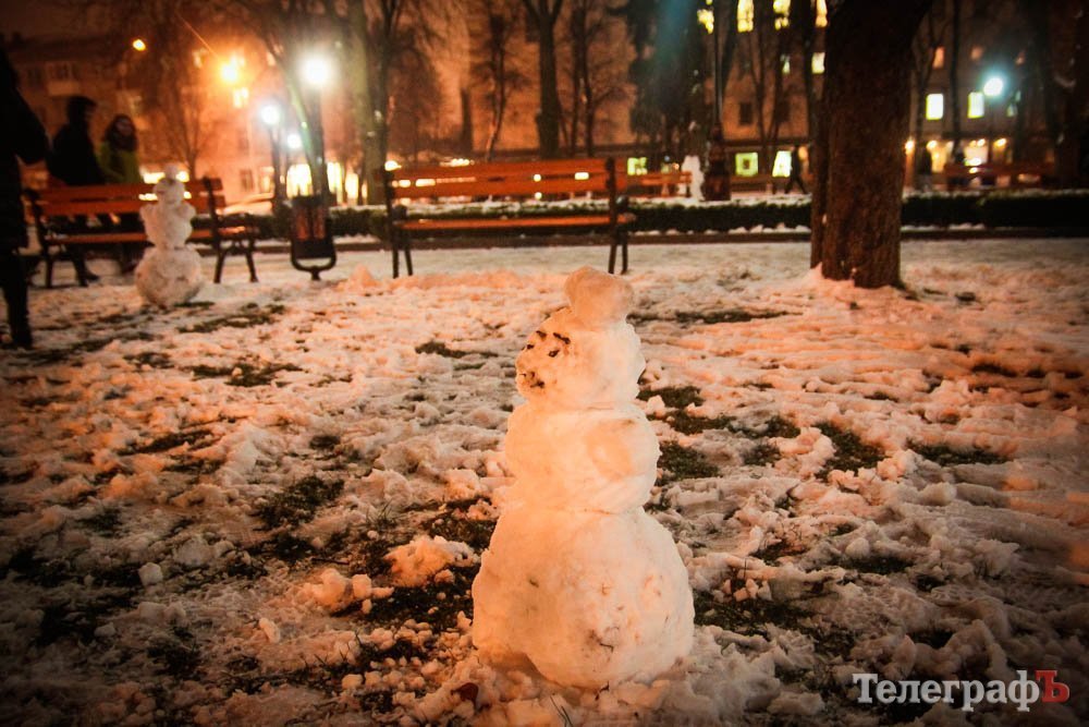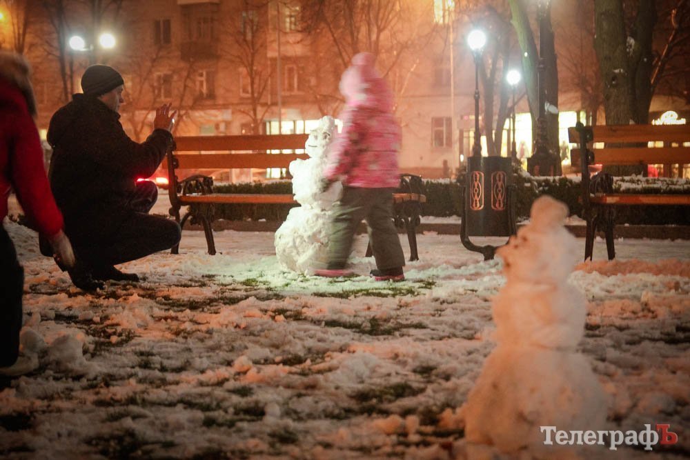 Вечером 17 января сквер Бабаева в центре Кременчуга стал площадкой для лепки снеговиков. Благодаря выпавшему снегу, дети и взрослые наконец-то смогли нормально скатать что-то вменяемое. Утром от снеговиков не осталось и следа…