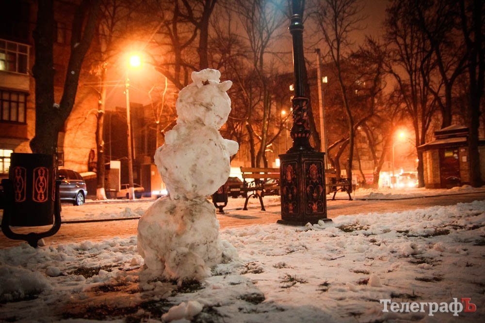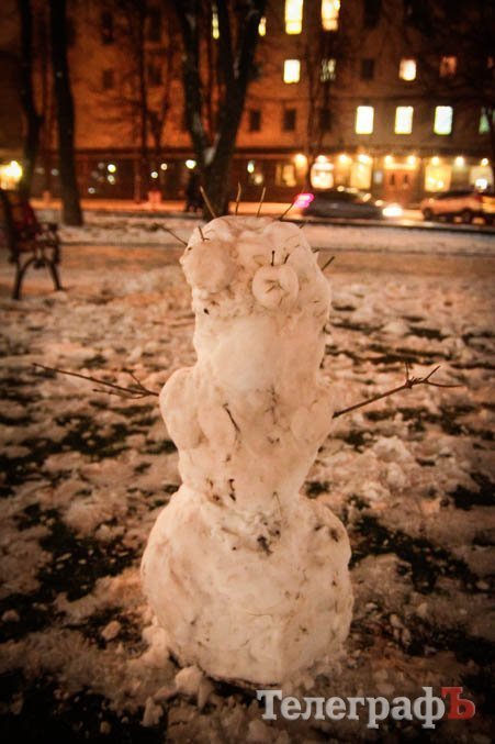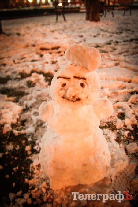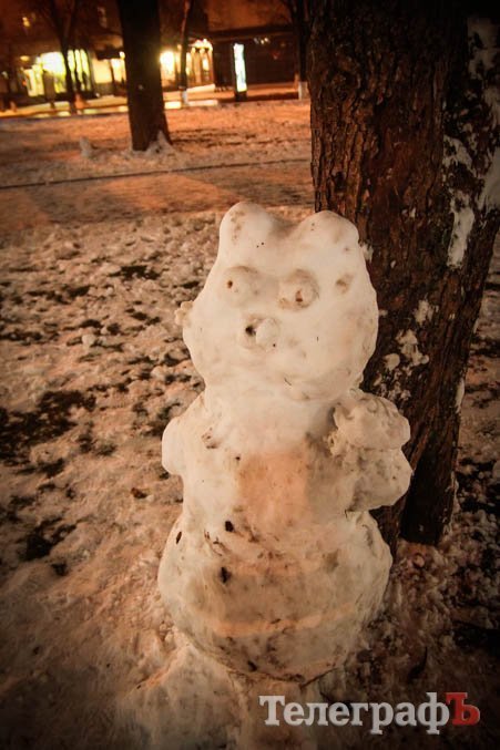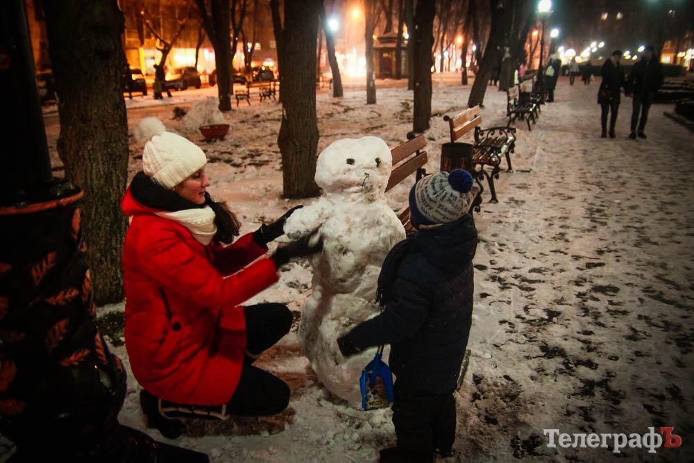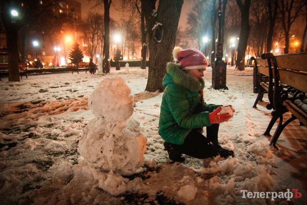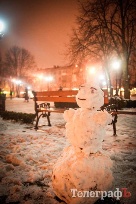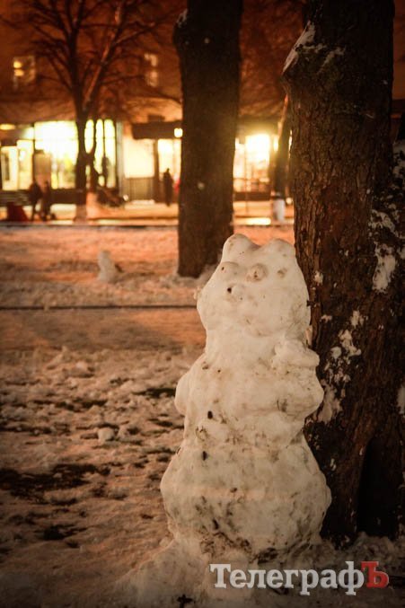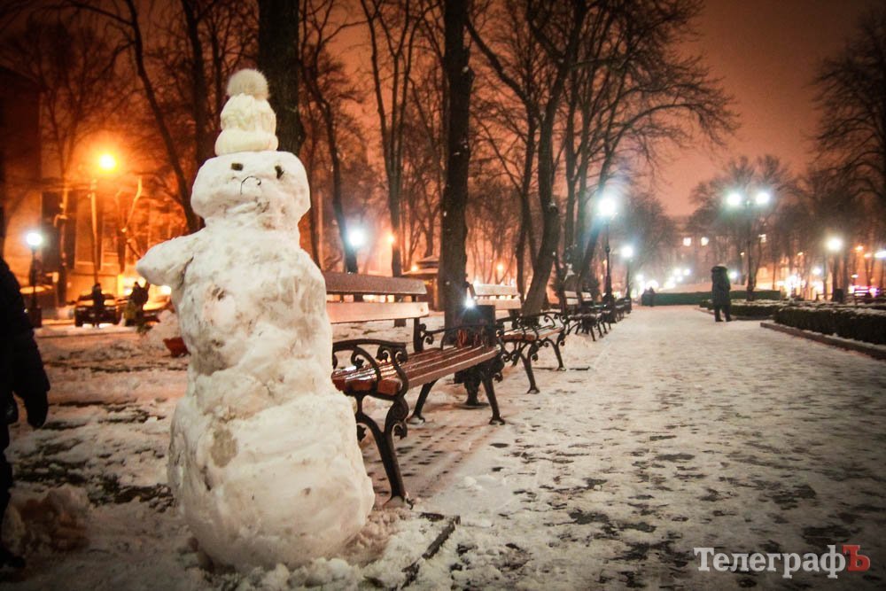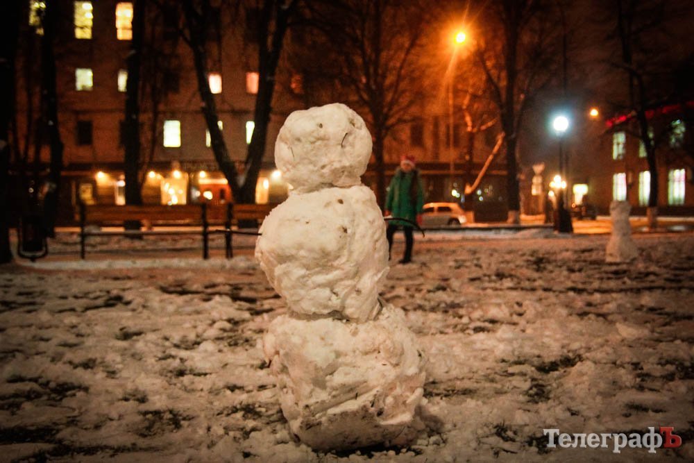 Вечером 17 января сквер Бабаева в центре Кременчуга стал площадкой для лепки снеговиков. Благодаря выпавшему снегу, дети и взрослые наконец-то смогли нормально скатать что-то вменяемое. Утром от снеговиков не осталось и следа…
