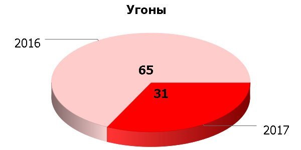Уменьшилось количество и угонов. Всего их зарегистрировано 31 против 65 в 2016.