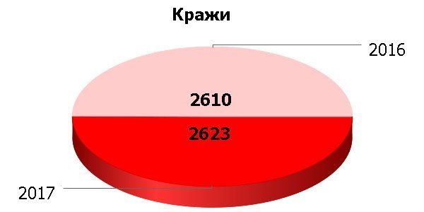 Хуже дела обстоят с кражами. Их зарегистрировано 2 623 (против 2 610 в 2016). С раскрытием совсем туго – лишь 36,12%.