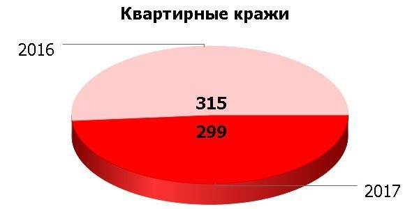 Квартир в этом году обокрали на 16 меньше (299 в 2017 против 315 в 2016 году).