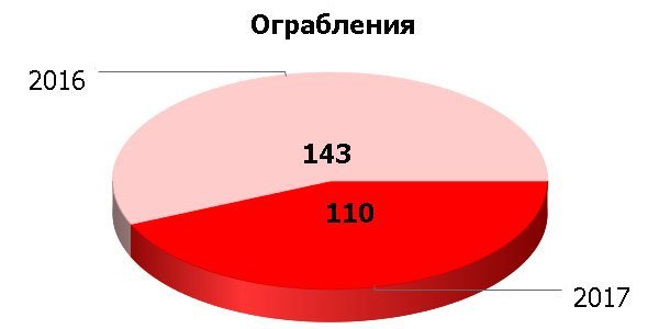 Ограбления – 110 против 143, однако только 55 из них раскрыли, а предъявили подозрение 44 задержанным.