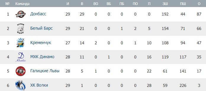 Турнірна таблиця