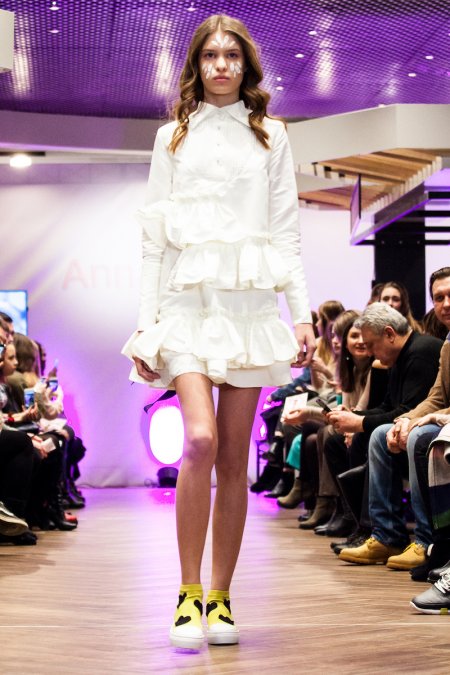Анна розповіла, що на створення колекції її надихнула книга Керрола «Аліса в країні чудес». На показі були представлені 35 луків (образів) у ніжних тонах, переважно прохолодних відтінків.