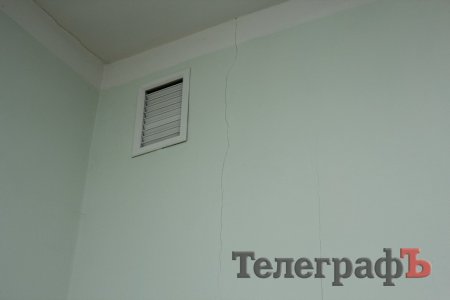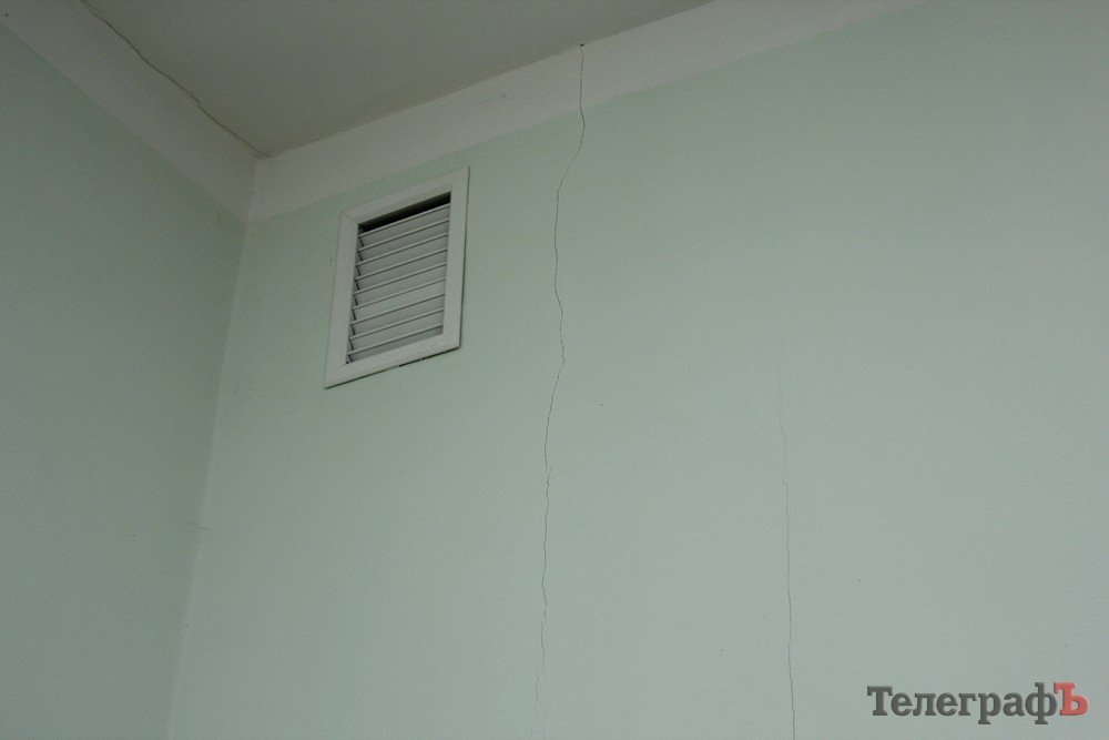 А это – трещины на школьных стенах. Директор школы подтвердила, что трещины образуются регулярно, здание дает усадку. «Здание дает большую усадку, ждем пока и смотрим,» – сказала Татьяна Одерий.