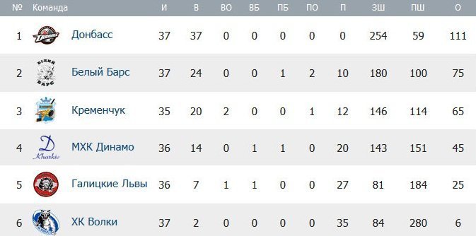 Турнірна таблиця