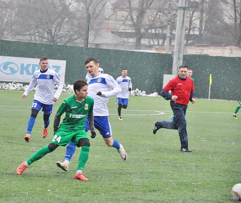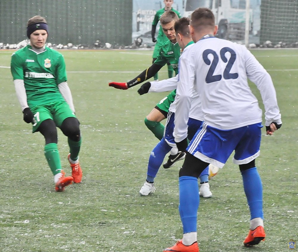 У першому таймі вболівальники, яких попри зимову холодну погоду зібралося вдосталь, голів не побачили. Серед небезпечних моментів запам'ятався момент від Сергія Степанчука, який на 40 хв струснув поперечину. Також до перерви Влад Піскун пробив потужним ударом в створ воріт.