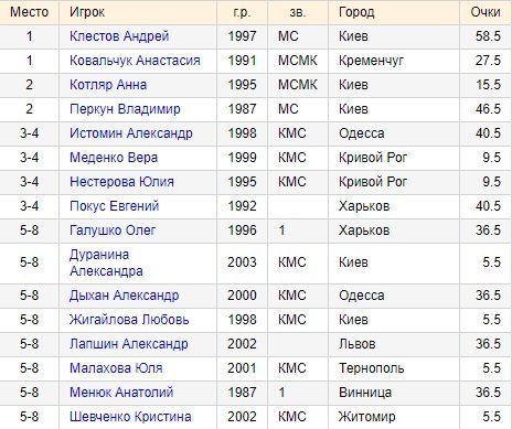 У чоловіків в фіналі Андрій Клєстов переміг Олександра Істоміна. Третє місце розділили Володимир Перкун та Євген Покус.