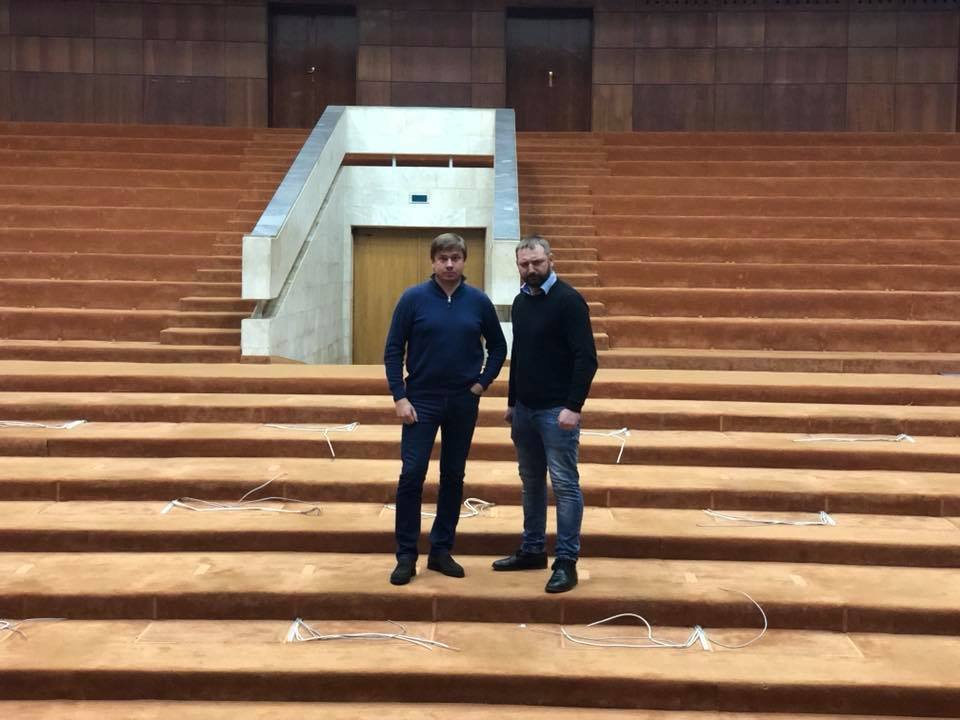 - Руїнами облради задоволений:), - написав заступник голови Полтавської облради Анатолій Ханко під фото де він і Олександр Біленький знаходяться в сесійній залі, яка готується до ремонту.