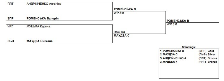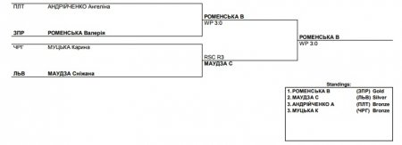 У віковій групі «юніори» (2002-2003 р.н.) Ангеліна Андрійченко (в.к. 50 кг, ЗОШ № 12) зайняла ІІІ місце, поступившись у півфінальному бою за очками майбутній чемпіонці з Запоріжжя.