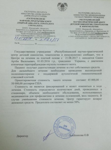 Діагноз: атипічна тераторабдоідна пухлина головного мозку. Необхідна трансплантація
