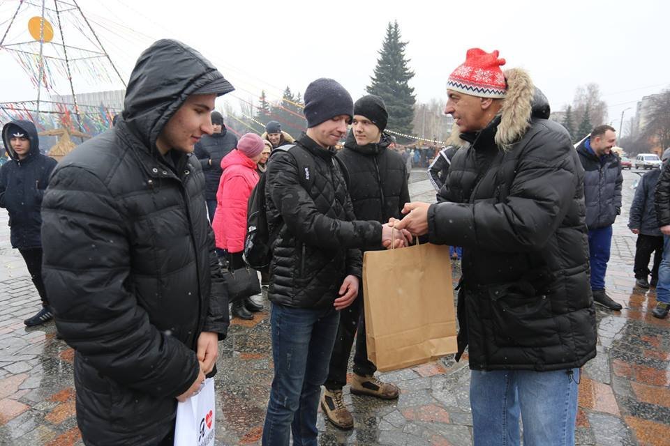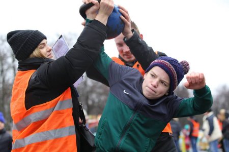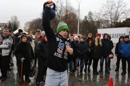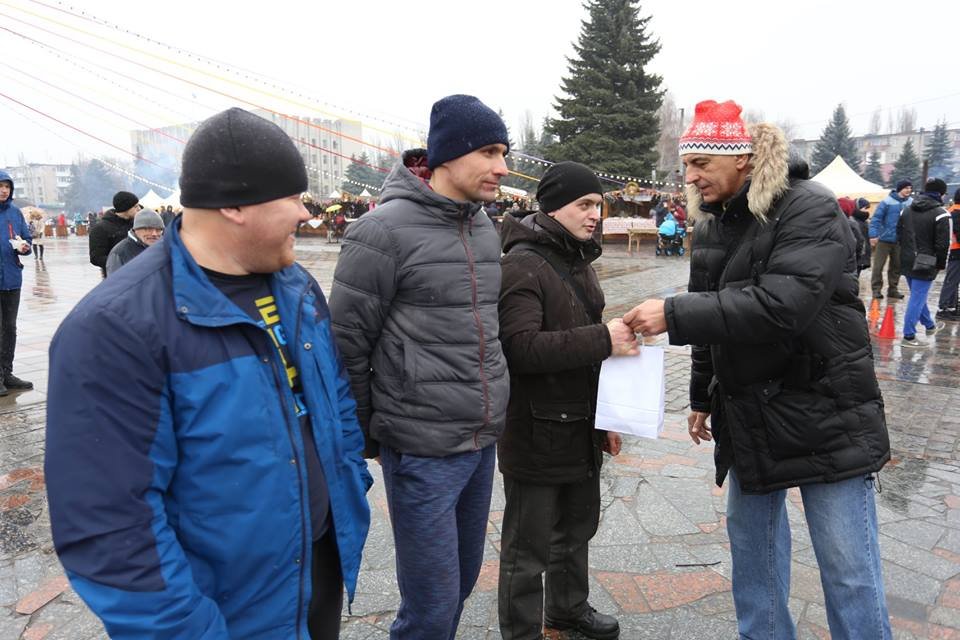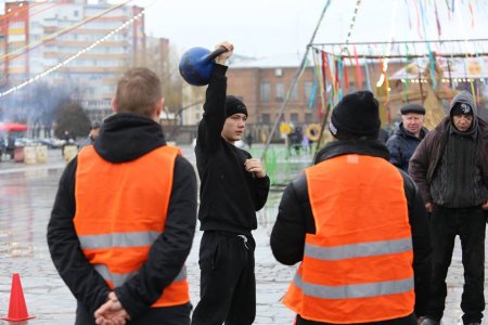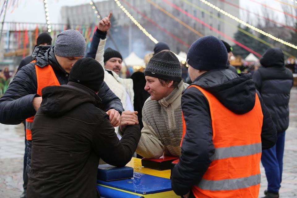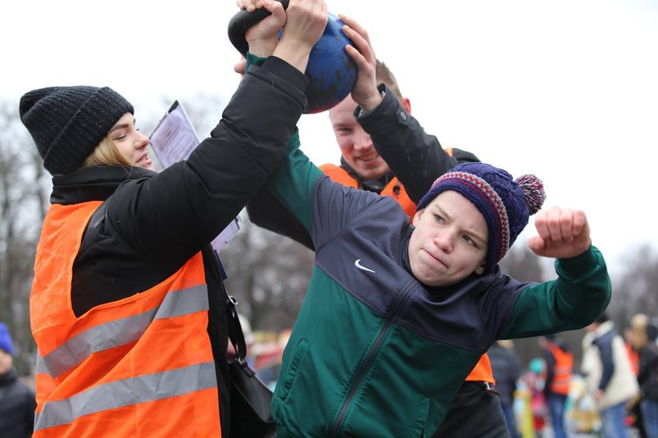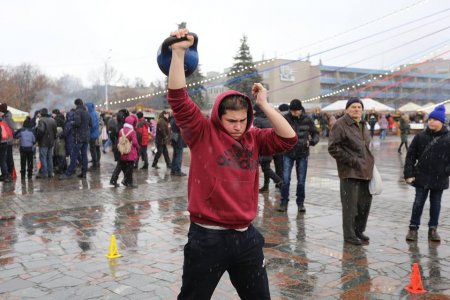 Під мокрим снігом, який сипав протягом змагань, чимало чоловіків зважилися перевірити свою силу. Організатори заходу підготували на цей день три змагання для двох вікових категорій.