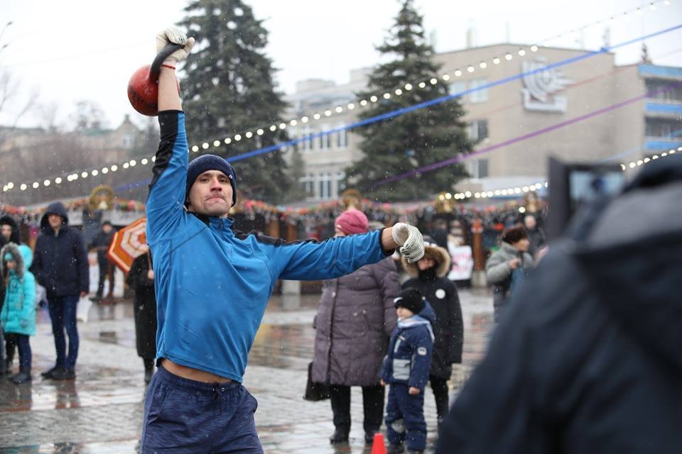 Найбільший ажіотаж був на гирьовому спорту, адже там встановлювався рекорд міста. Денис Бондарь під час штовхань гирі вагою 24 кг дізнався, що наразі рекорд становить 202 штовхання і вирішив його перевершити. Йому це вдалося – на три штовхання рекорд міста оновився. Варто зазначити, що Денис є майстром спорту в цьому виді.