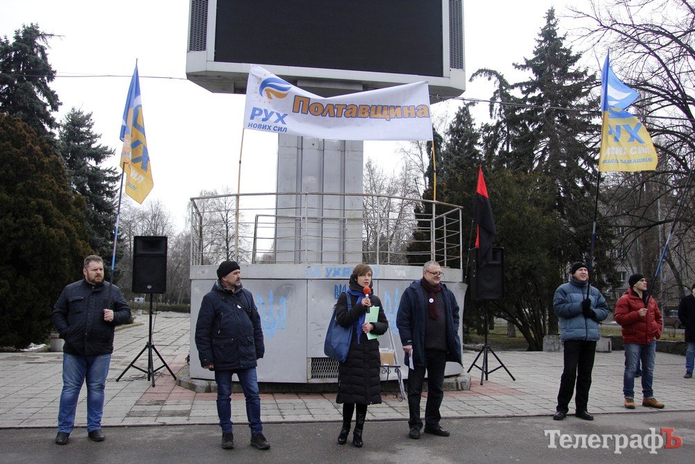 18 лютого на площі Незалежності прихильники політичної партії «Рух Нових Сил Михайла Саакашвілі» провели мітинг у Кременчуці. Понад сотня кременчужан зібралися на мітингу. На заході були як представники політичних партій "Рух нових сил" та "Наш дім Кременчук" а також депутати Кременчуцької міськради Оксана Піддубна та Валентина Гордеєва.