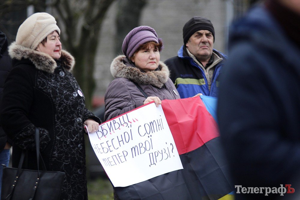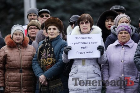 За словами організаторів заходу, вони вимагають відставку президента та проведення позачергових виборів. Кременчужани тримали плакати з написами: "Порошенко, ти розтрощив наші мрії. Пішов геть!", "Ваші тарифи – петля на шиї народу", "Вбивці небесної сотні – тепер твої друзі?".
