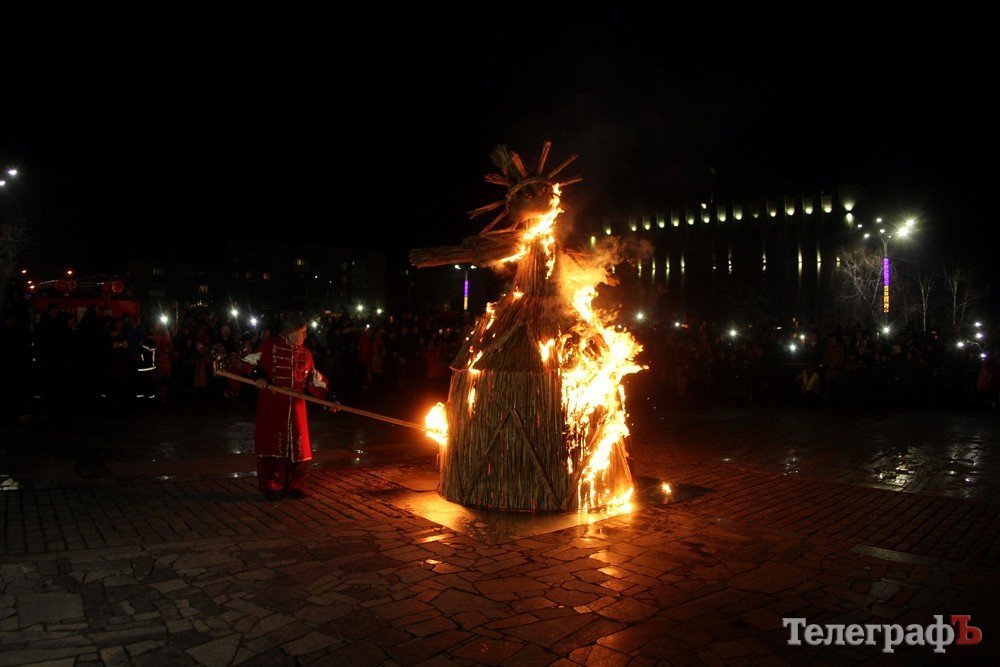 18 лютого після трьох днів святкування Масляної кременчужани на площі Перемоги спалили опудало Марени.