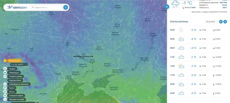 Ventusky прогнозує, що уже завтра, 20 лютого, стовпчики термометрів опустяться до -4°C.