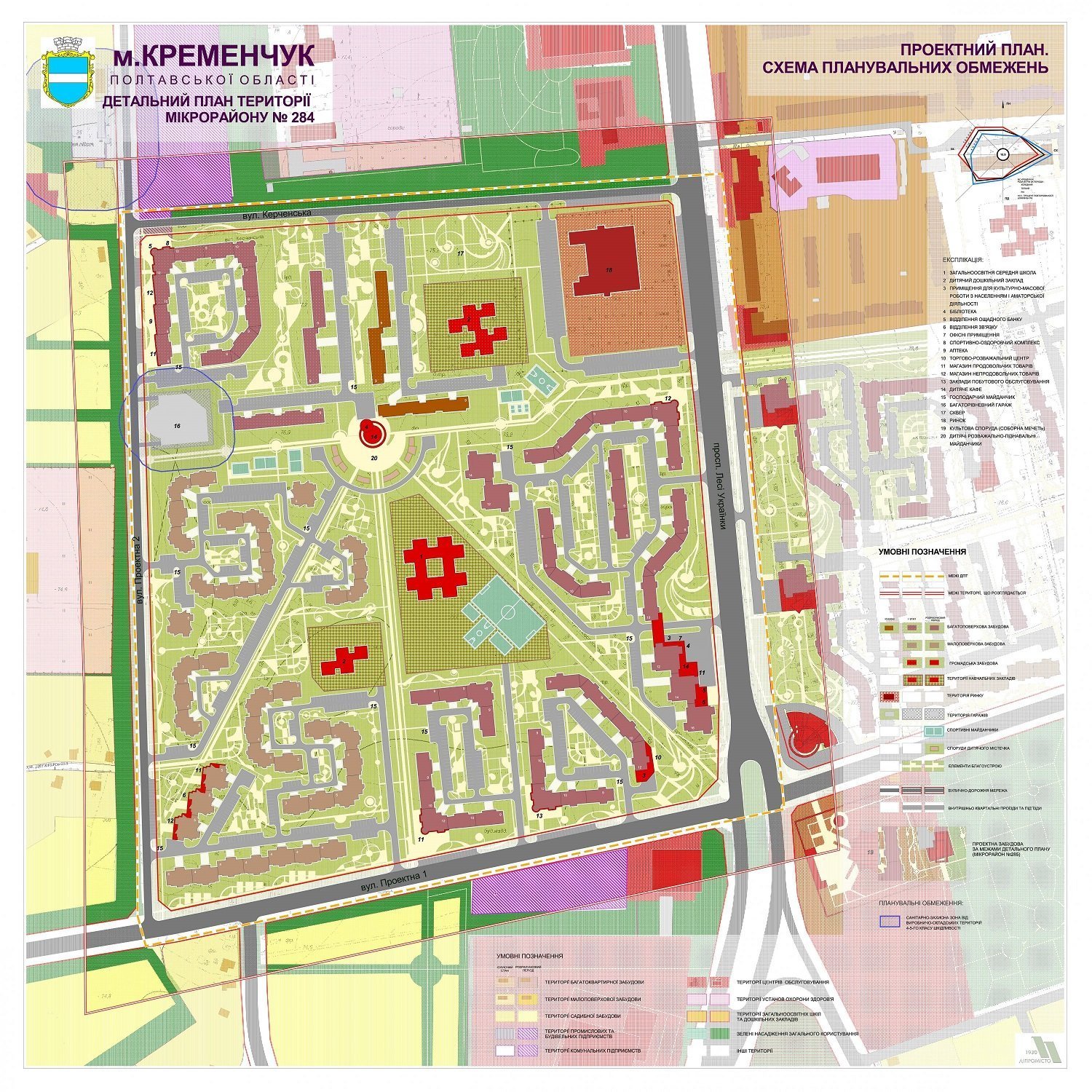 План детальной застройки предусматривает такие объекты:
