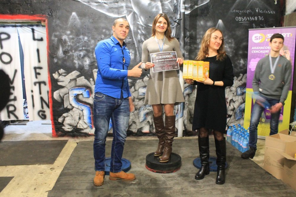 - Живогляд Олена (60 кг) в праві «станова тяга» підняла вагу штанги (130 кг) та завоювала перше місце в відкритій віковій категорії Open