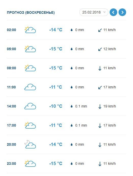 В воскресенье, 25 февраля, солнце также редко будет показываться из-за туч. Прогнозируют температуру воздуха от -10°C до -15°C.