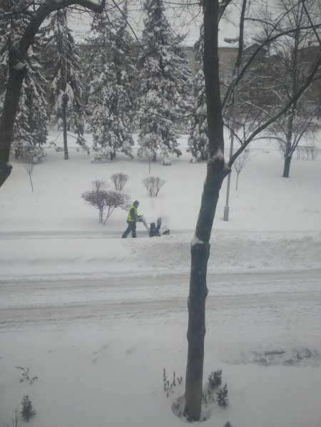 В связи с непогодой, КАТП -1628 были переведены на круглосуточный режим работы. И вот уже вторые сутки с переменным успехом дворники и спецтехника борются со стихией. Кто же кого побеждает?