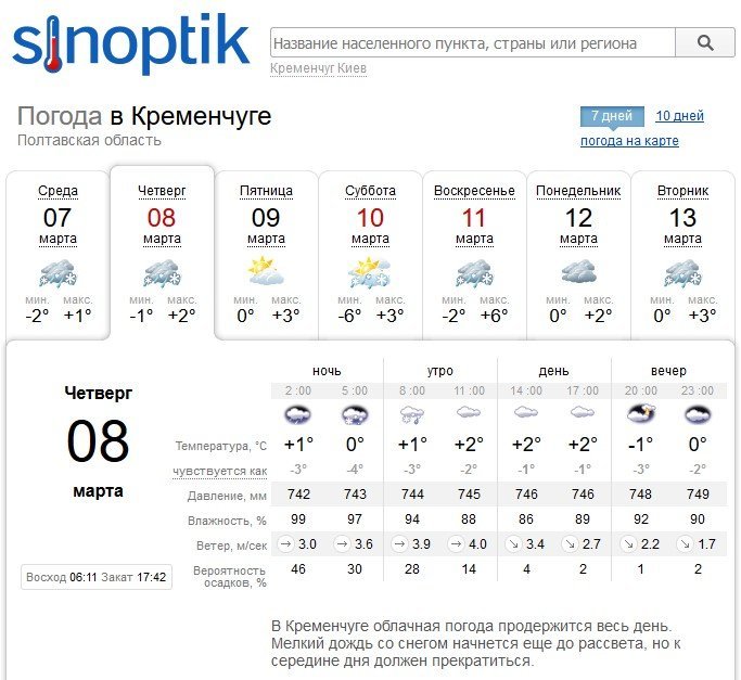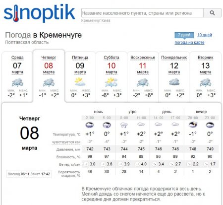 8 марта синоптики обещают кременчужанам влажную погоду.