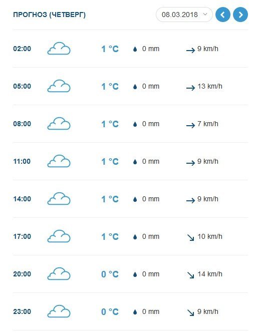На rp5 обещают, что дождь закончится ещё до рассвета и весь остальной день пройдет без осадков. По их прогнозу, столбики термометров не сползут ниже -2°C и не подымутся выше +1°C.