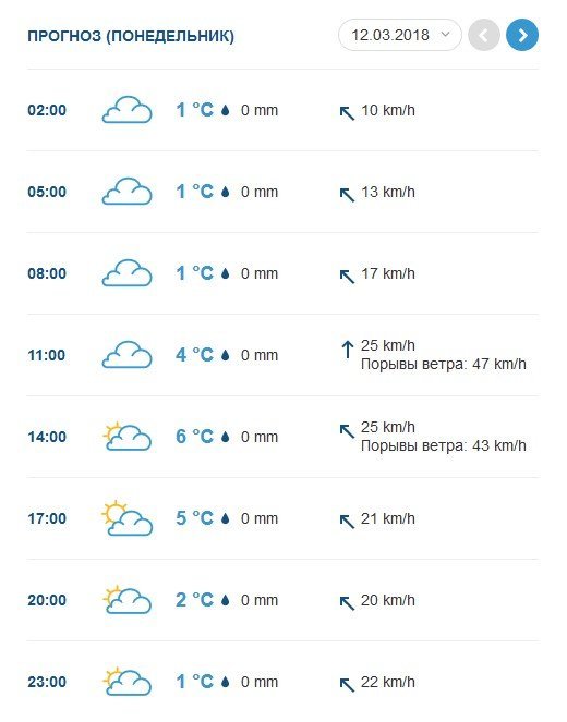 Ventusky прогнозує, що уже сьогодні, 12 березня, і завтра, 13 березня, здійметься вітрюган з поривами до 12 м/с. В середу, 14 березня, увесь день з неба падатиме дощ, а під вечір навіть сніг. Стовпчики термометрів триматимуться на рівні 0°C…+1°C.