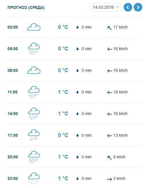 Схожий прогноз і на Gismeteo – дощ з середи, 14 березня, по суботу, 17 березня, й сніг у неділю, 18 березня. Температура повітря триматиметься на рівні від 0°C до +10°C і лише в останній день тижня термометри сповзуть до -9°C.