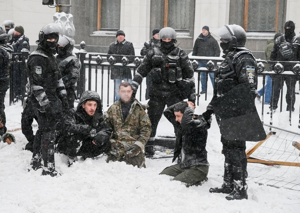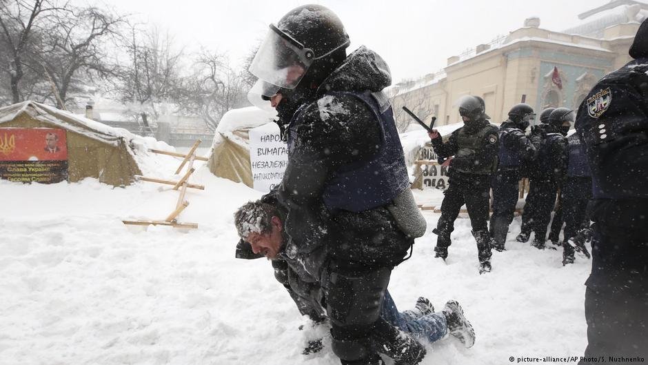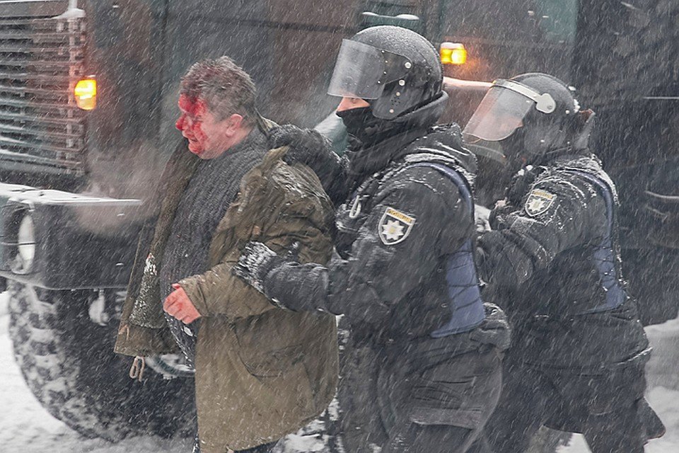 По версии полиции, люди, находившиеся в палаточном лагере, оказали сопротивление полицейским. В результате полиция задержала, поставила на колени в снег, и доставила в райотделы столицы 111 участников протестов. А сам лагерь был разрушен.