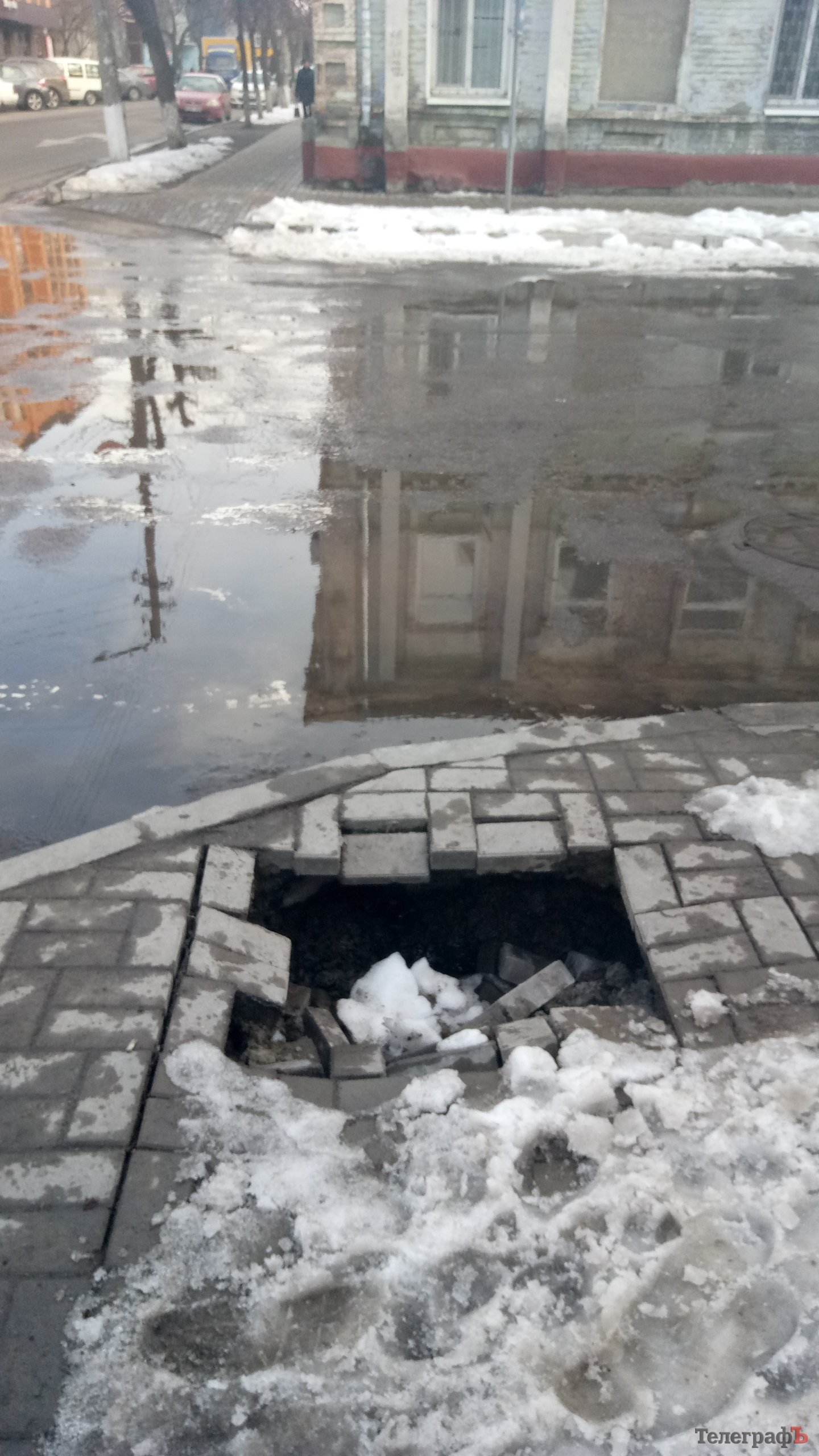 Граждане пешеходы! Осторожней передвигайтесь по тротуару в районе перекрёстка ул. Шевченко и Майора Борищака – со стороны дома №15.