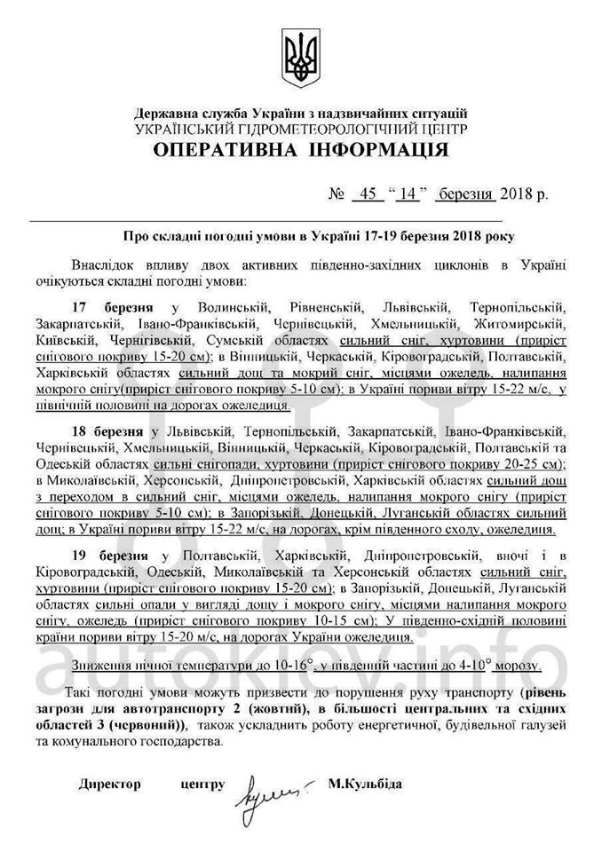 В субботу, 17 марта, в Полтавской, Кировоградской, Черкасской и Харьковской областях – сильный мокрый снег до 10 см, местами гололедица, порывы ветра до 22 м/с.