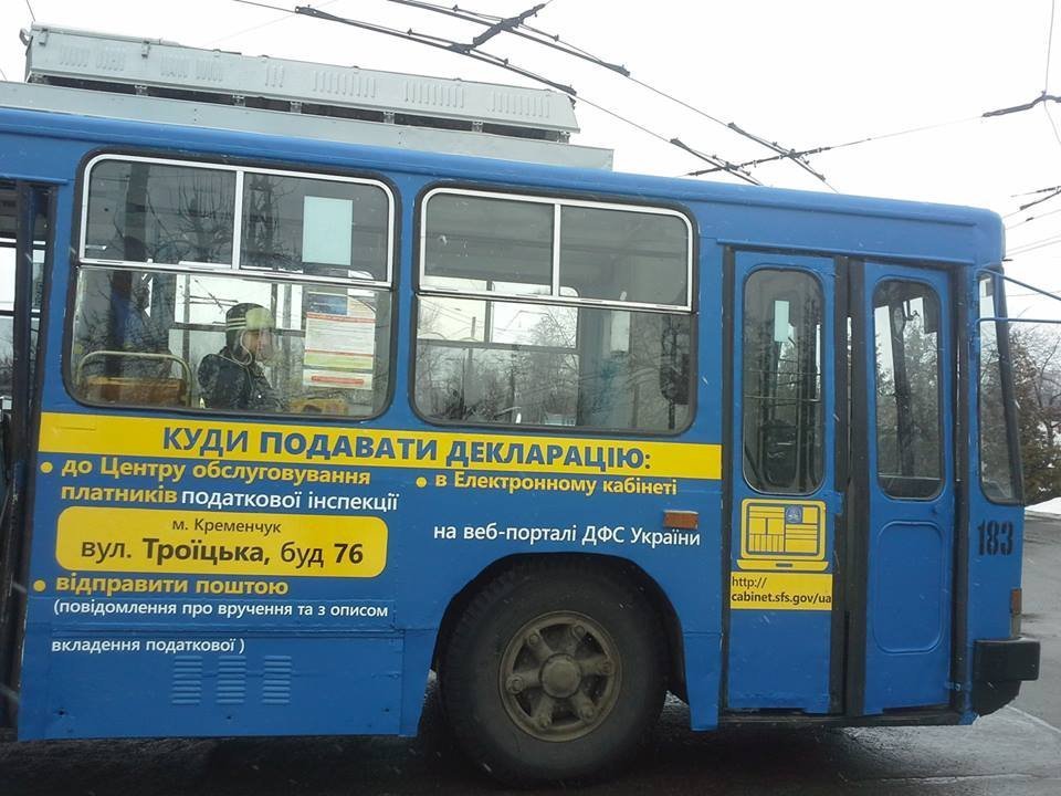 Тепер вулицями Кременчука курсуватиме «тематичний» тролейбус та нагадувати мешканцям і гостям міста про Деклараційну кампанію та важливість сплати податків.