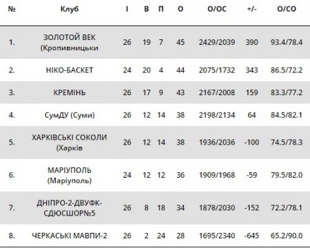 Турнірна таблиця