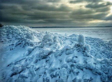 - На Кременчугском водохранилище на берег выбрасывает горы льда. Зрелищно и постапокалиптично) За сезонными селфи - туда)), - написав Ілля.