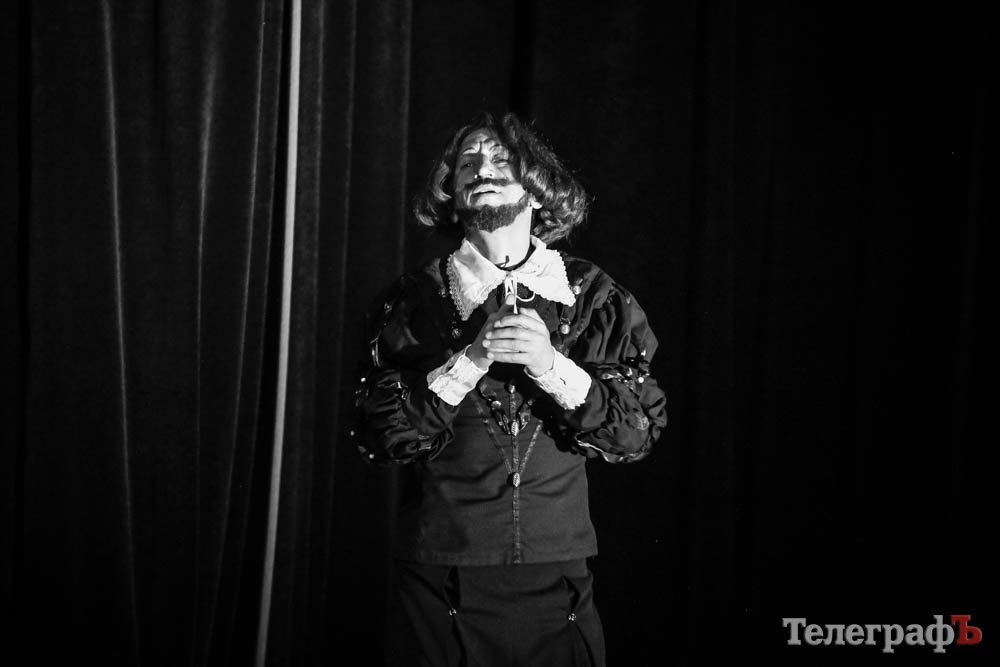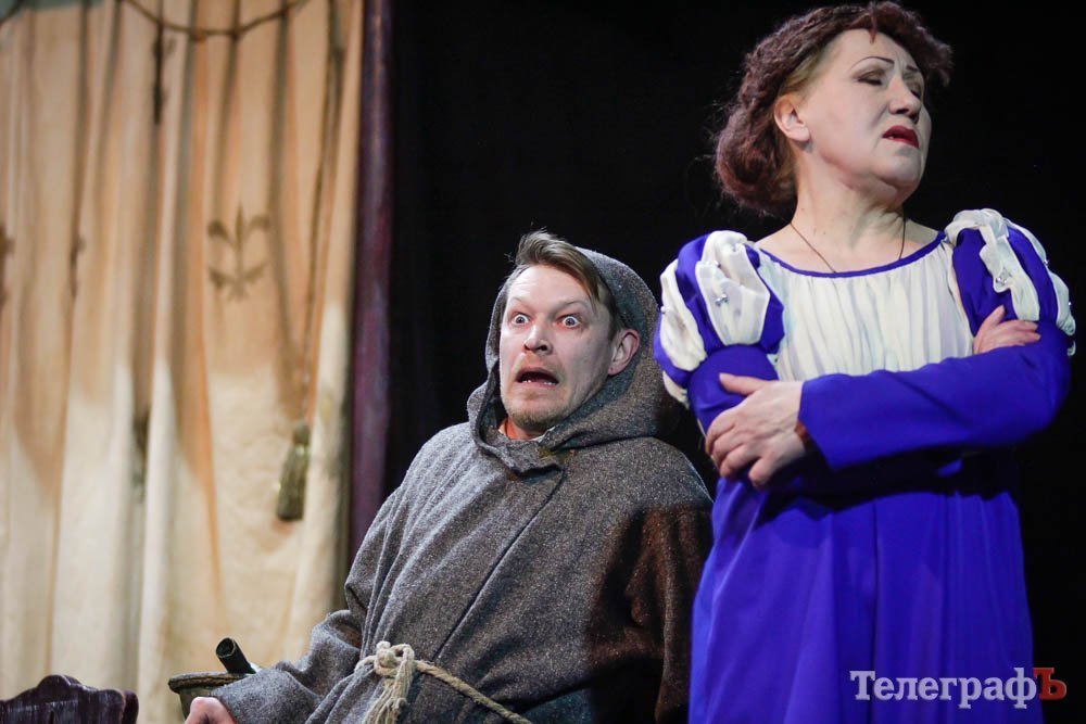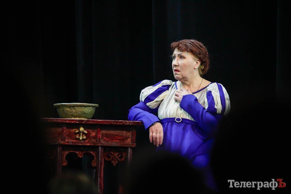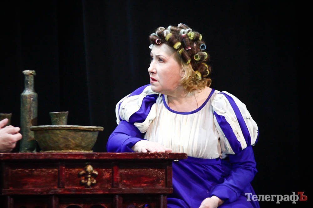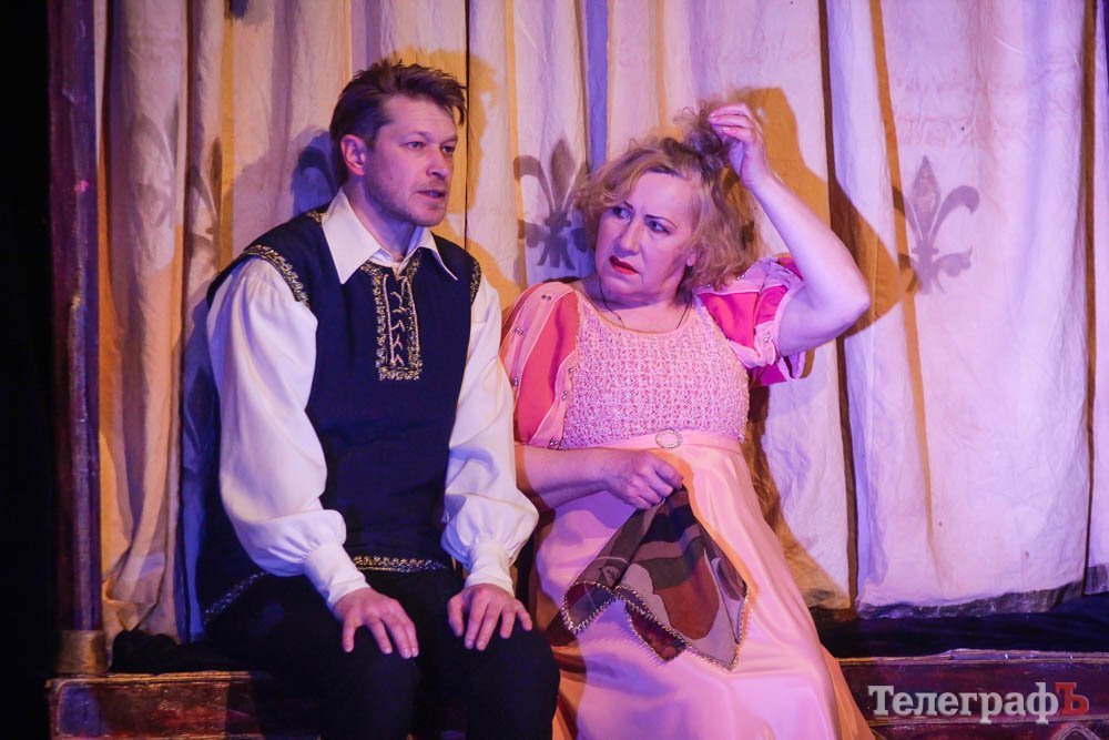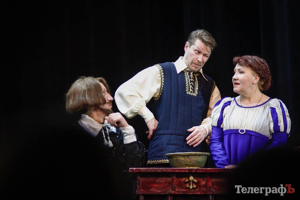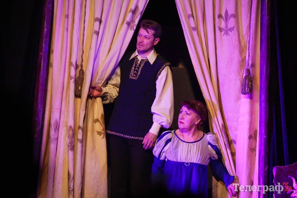 Ко всему, представьте себе, заслуженная артистка Украины Любовь Веселова – это вам и Джульетта, и ее няня-кормилица, и дочь Лукреция. А актер Роман Покровский – Ромео и монах Лоренцо одновременно. Шекспира играет засл. арт. Алексей Быш. И все персонажи — абсолютно не похожи друг на друга.
