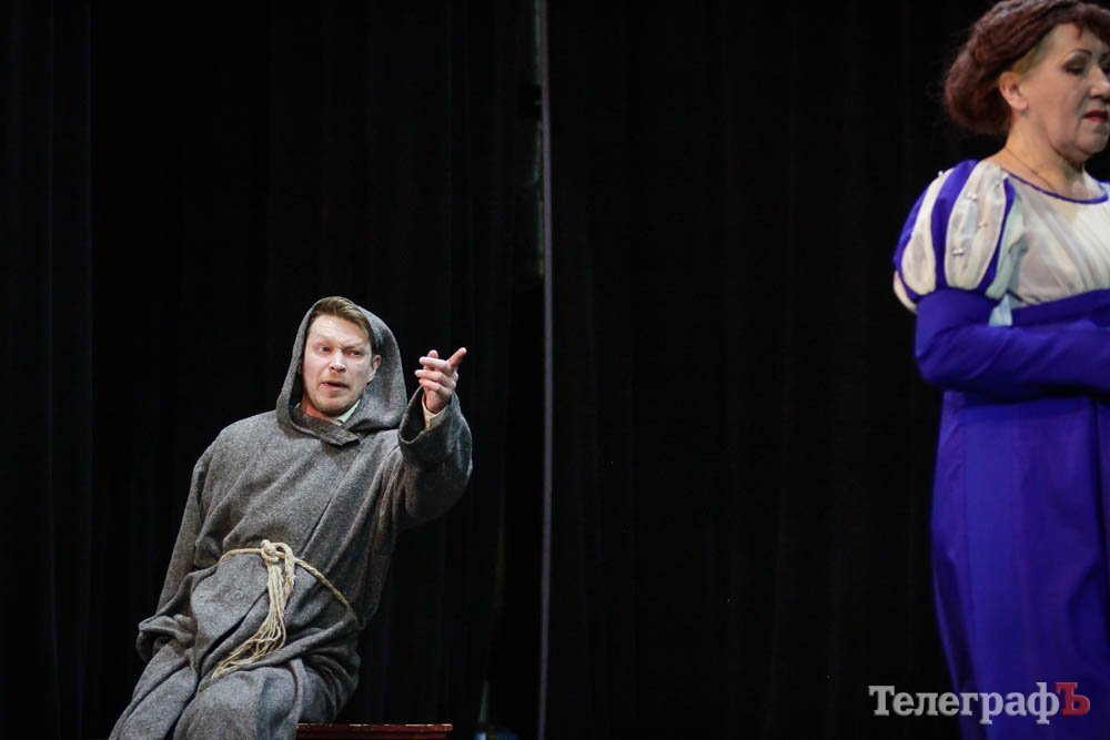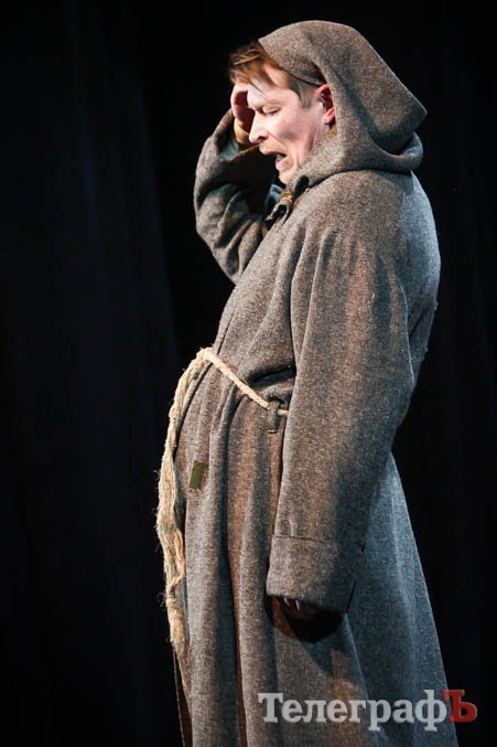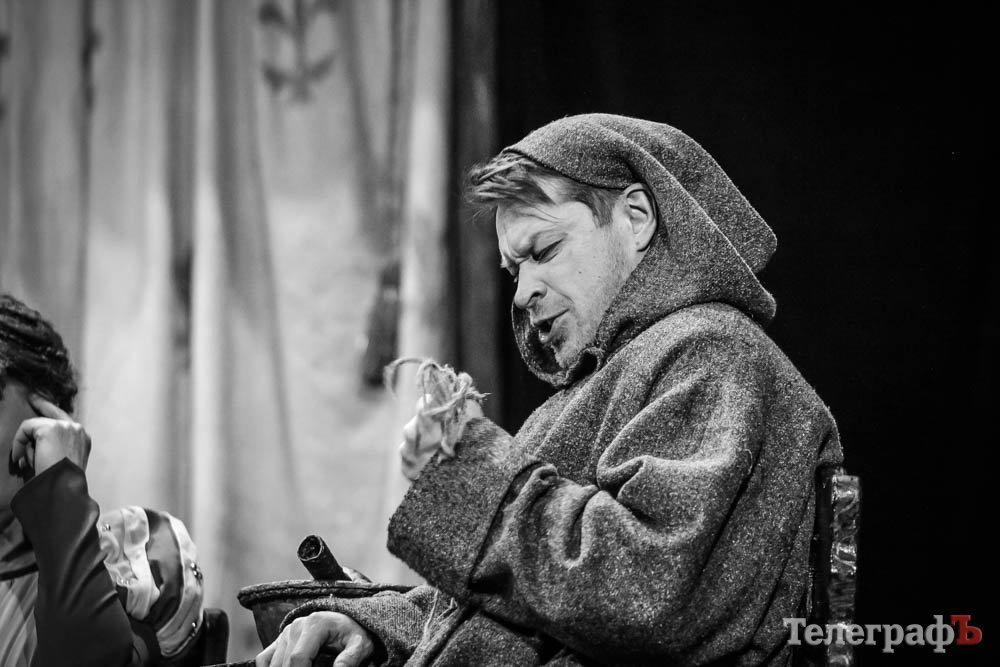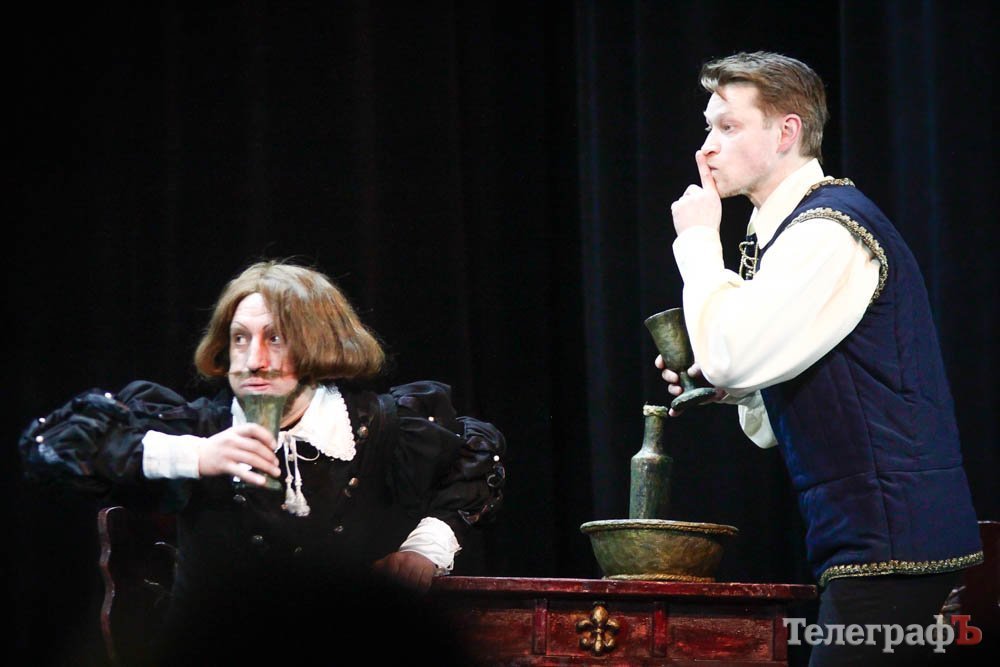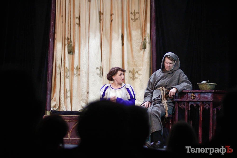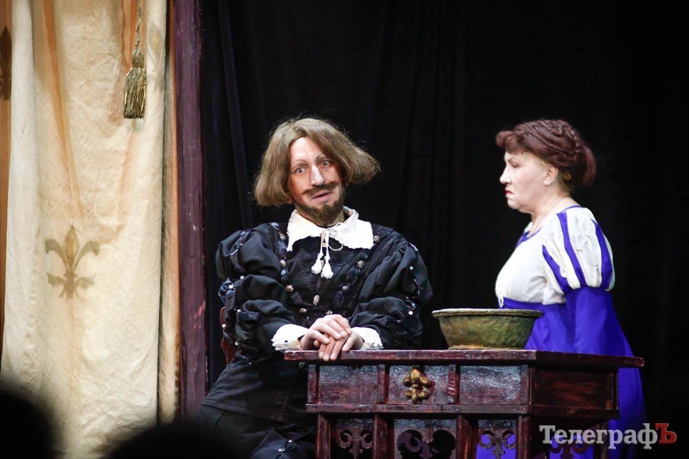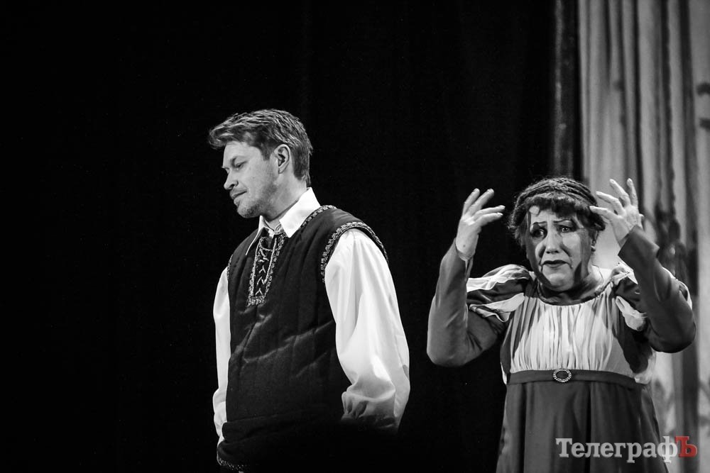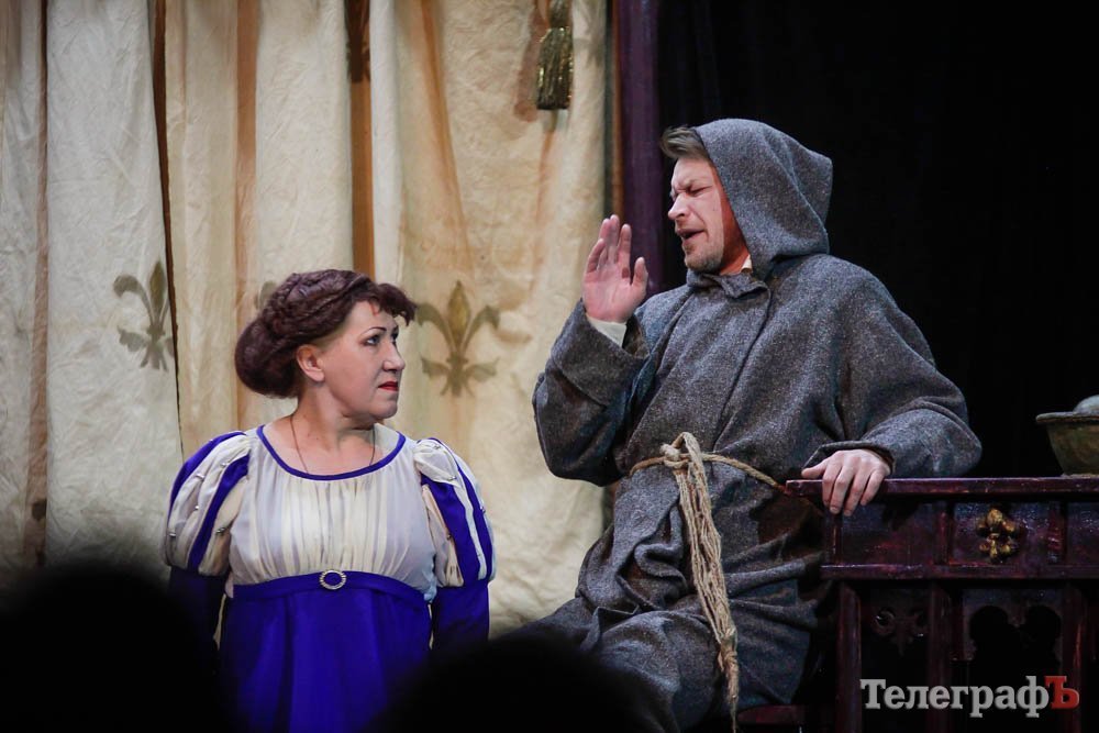 Ко всему, представьте себе, заслуженная артистка Украины Любовь Веселова – это вам и Джульетта, и ее няня-кормилица, и дочь Лукреция. А актер Роман Покровский – Ромео и монах Лоренцо одновременно. Шекспира играет засл. арт. Алексей Быш. И все персонажи — абсолютно не похожи друг на друга.
