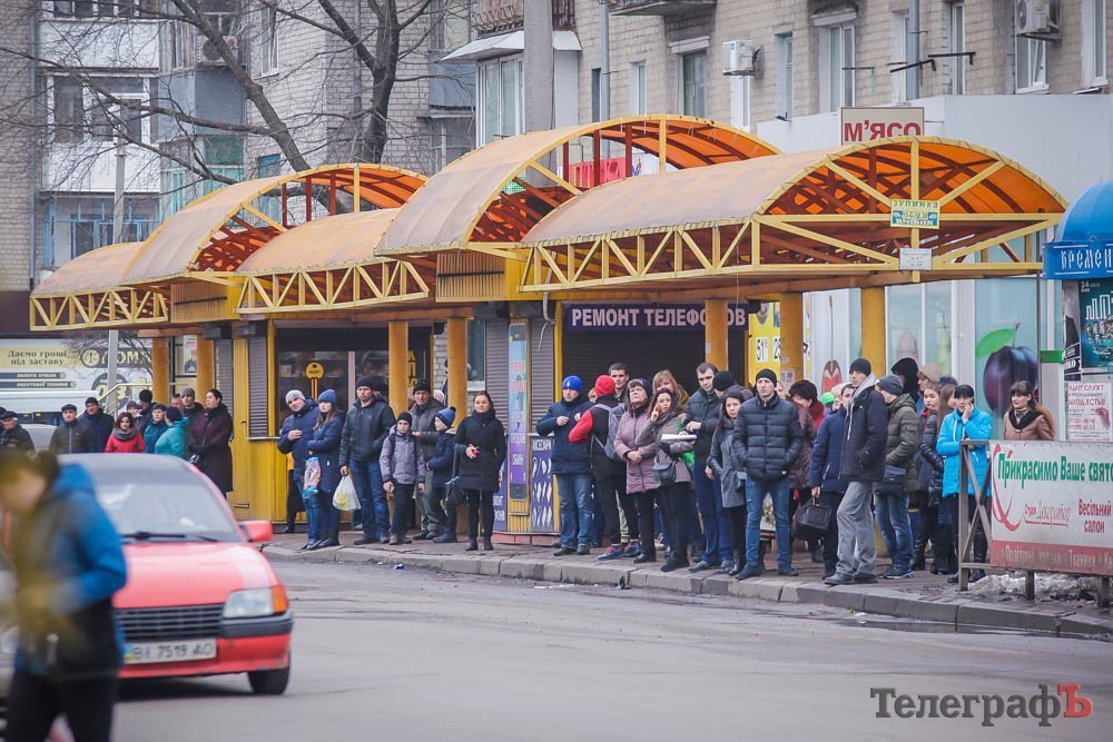 Из-за отключения электричества Кременчугскому троллейбусному управлению на остановках общественного транспорта в вечерний час пик стали собираться толпы людей, пытающихся залезть в маршрутку. Маршрутки ездят забитые. Некоторых останавливают патрульные полицейские – штрафуют за «перегруз».