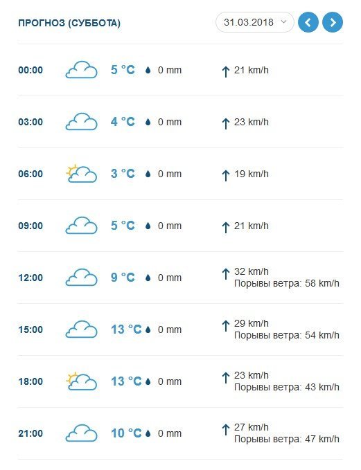 За прогнозом Ventusky, у суботу, 31 березня, повітря у Кременчуці прогріється до +13°C. Буде сухо і вітряно – пориви вітру досягнуть 16 м/с. Вітрюган не вщухне і в неділю, 1 квітня. А стовпчики термометрів досягнуть позначки у +17°C.