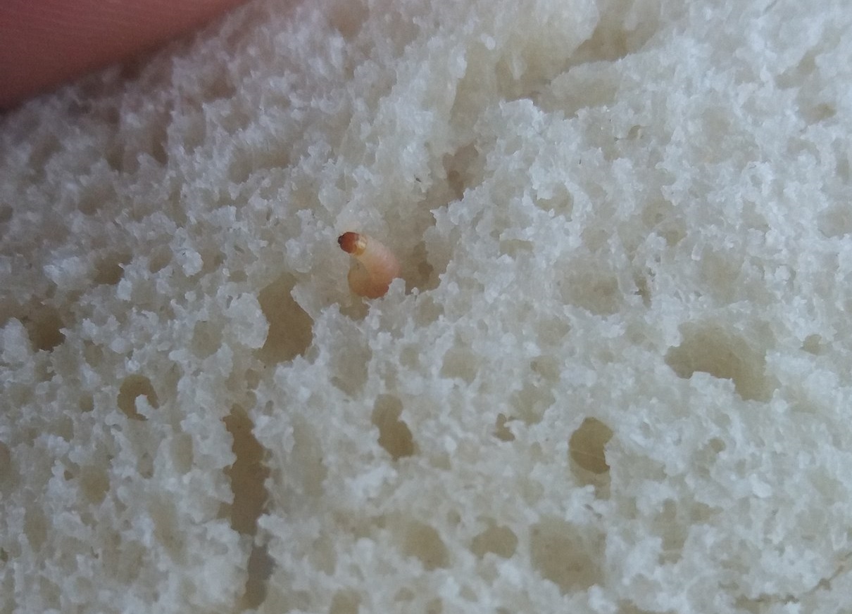 Многие комментаторы усомнились в том, что червяк мог попасть в хлеб во время изготовления. Давайте представим себе путь этого червяка... Кстати, по виду червяк совсем не похож на мучного червя, а скорее относится к личинкам вредителей плодовых культур.
