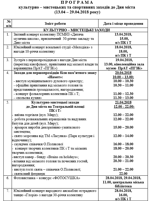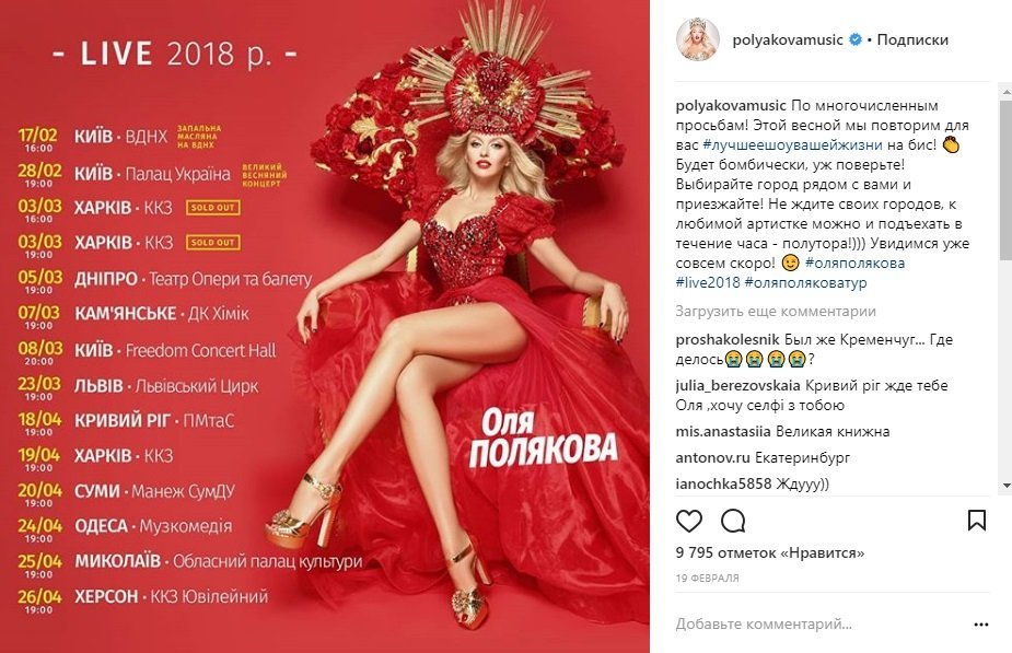 До Дня Горішніх Плавнів, 21 квітня, на площі виступить супербілявка Оля Полякова. За попередньою інформацією співачка мала виступити у Кременчуці, про це Полякова повідомила на своїй сторінці в instagram, але згодом згадка про Кременчук зникла.