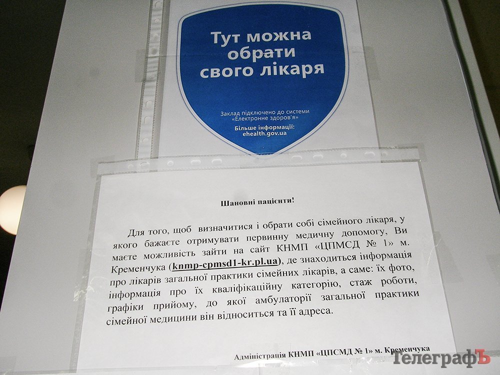 Cиняя табличка «Тут можна обрати свого лікаря» служит подтверждением того, что данное медицинское предприятие (амбулатория №5) уже подключено к системе «Електронне здоров’я».