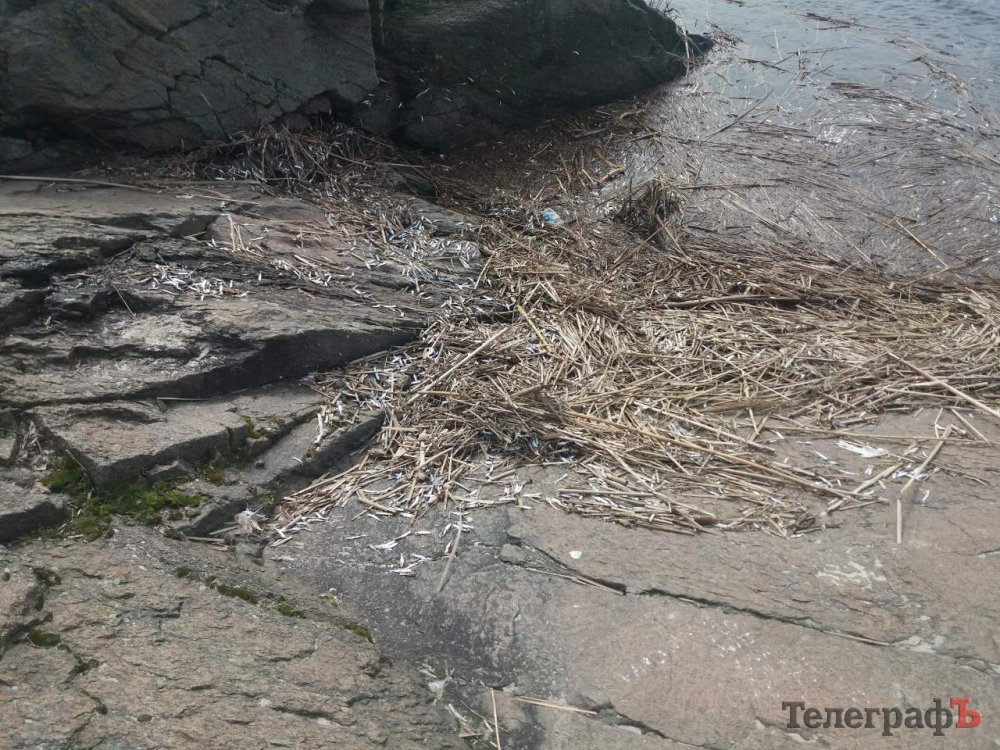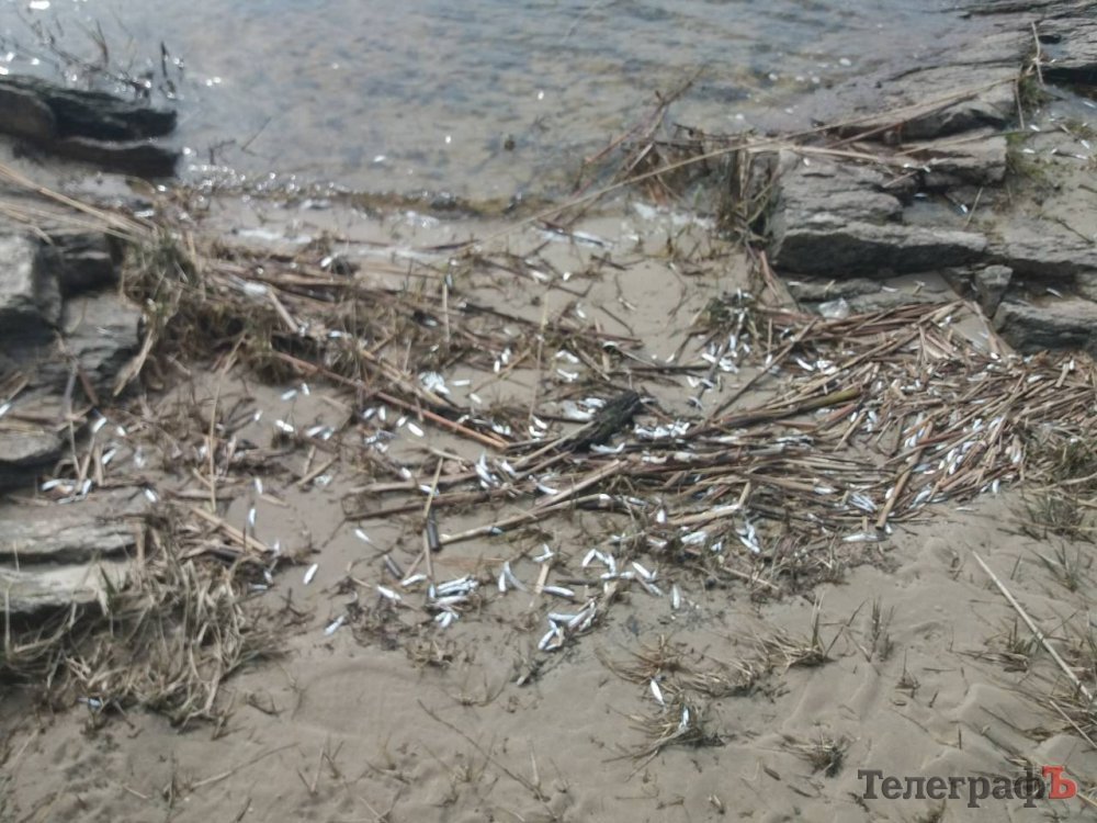 В последние дни берега Днепра в районе Кременчуга усеяны мёртвой мелкой рыбой.