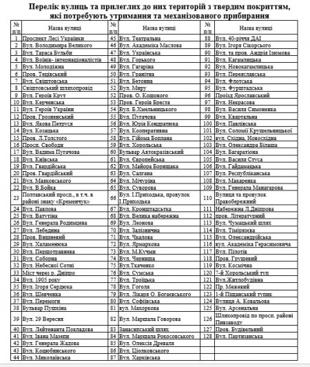 Усього в списку на механізоване прибирання 128 вулиць