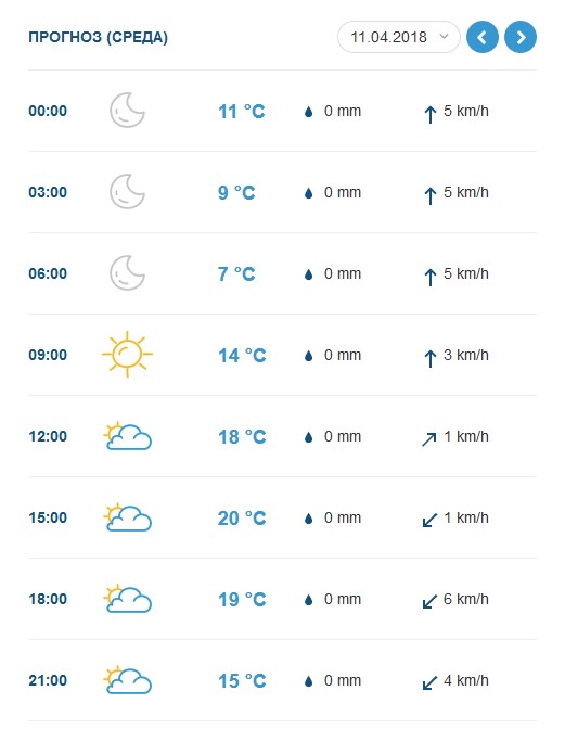 На rp5 нас попереджають, що зранку у четвер, 12 квітня, здійметься сильний вітер з поривати до 11 м/с. У п'ятницю, 13 квітня, зранку можливий дощ. Максимальна прогнозована температура повітря +19°C, мінімальна - +5°C.