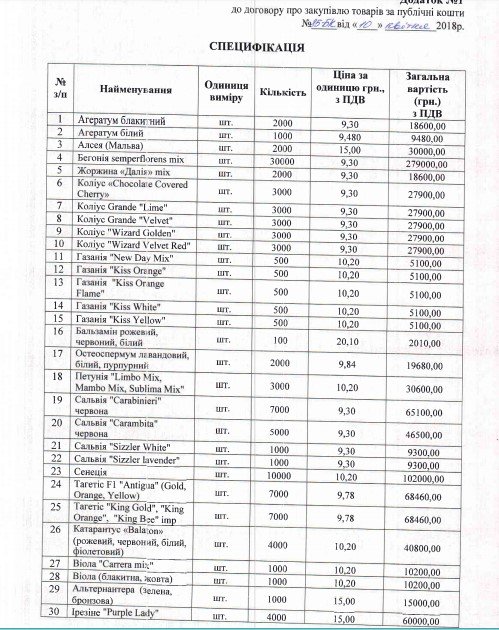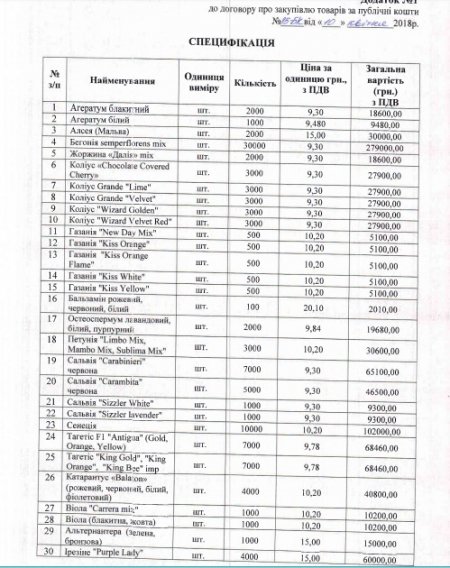 Какие еще цветы купят для Кременчуга - в спецификации к договору, источник - ProZorro.