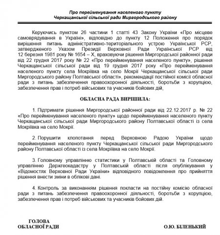 - села Мокріївка на село Мокрії (Черкащанської сільської ради Миргородського району)