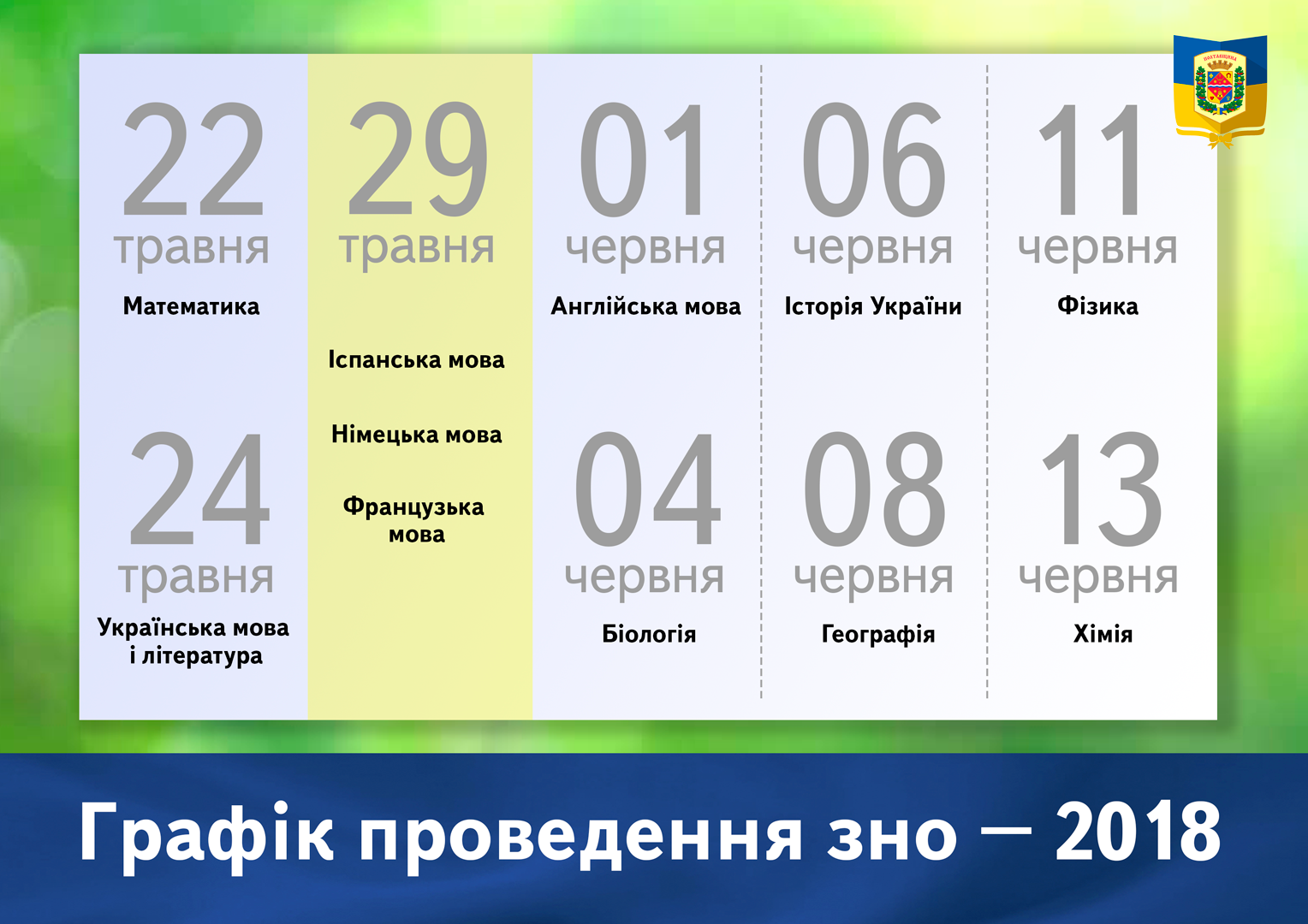 У 2018 році для вступу до закладу вищої освіти абітурієнти можуть подавати сертифікати зовнішнього незалежного оцінювання 2016, 2017 (окрім результатів з іноземних мов) та 2018 років. Основна сесія ЗНО пройде з 22 травня до 13 червня, додаткова – з 2 до 11 липня.